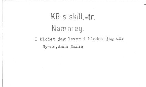 //// KB:s still.-tr. //// Namnreg. //// I blodet jag lever i blodet jag dör Nyman,Anna Maria ////