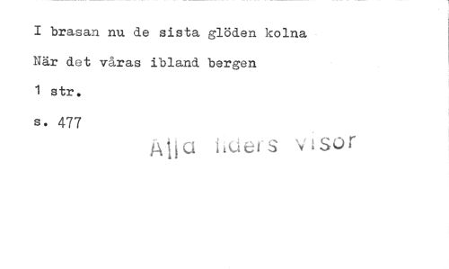 //// I brasan nu de sista glöden kolna - När det våras ibland bergen //// 1 str. //// s. 477 //// Alia iiciers visor ////