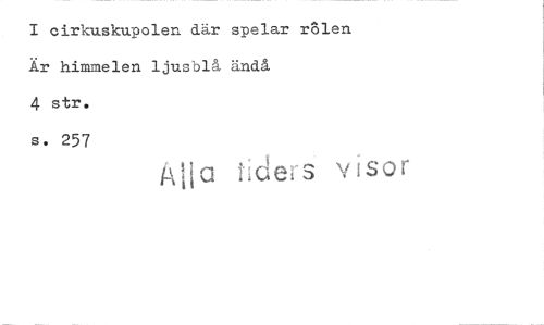 //// I cirkuskupolen där spelar rellen //// Är himmelen ljusblå ändå //// 4 str. //// s. 257 //// visor ////