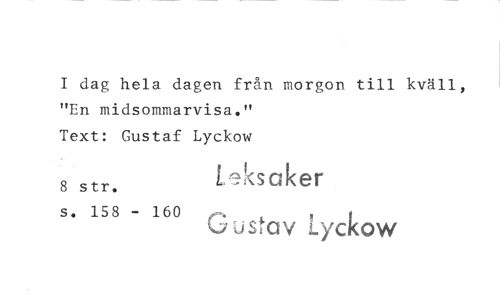 //// I dag hela dagen från morgon till kväll, "En midsommarvisa." //// Text: Gustaf Lyckow //// 8 str. 'L'.ksaker //// s. 158 - 160 av Lyckow ////
