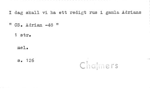 //// 1 dag skall vi ha ett redigt rus i gamla Adrians " Cs. Adrian -48 " //// 1 str, //// mel. //// s. 126 //// C i s ////