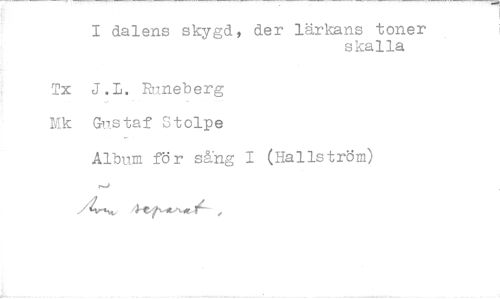 //// 1 dalens skygd, der lärkans toner //// skalla //// Tx J .L. Runeberg Mk G»staf Stolpe //// Album för säng 1 (Hallström) //// /11:114„ 4-Cp-it"«,46 , ////