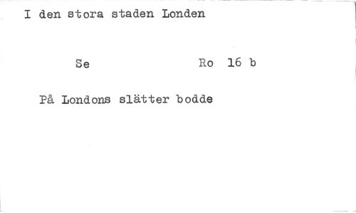 //// I den stora staden Londen //// Se Ro 16 b //// På Londons slätter bodde ////