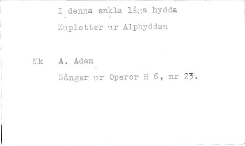 //// I denna enkla låga hydda Kupletter ur Alphyddan //// Mk A. Adam //// ‹, //// ,Janger ur Operor H 6, nr 23. ////