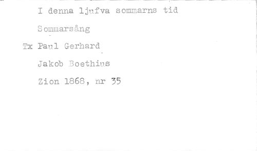 //// I denna ljufva sommarns tid Sommarsäng //// Tx Paul Gerhard //// Jakob Boethius //// Zion 1868, nr 35 ////