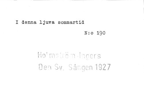 //// I denna ljuva sommartid //// N:o 190 //// cers //// Ilen Sv. Sången 1927 ////