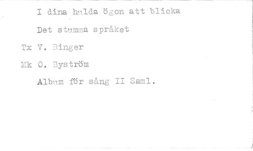 //// 1 dina hulda ögon att blicka Det stumma språket //// Tx V. Binger //// Mk 0. Byström //// Album för sång II Saml. ////