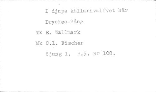 //// I djupa källarhvalfvet här Dryckes-Sång //// ix E. Wallrnark //// Mk C.L. Fischer //// Sjung 1. H.5. nr 108. ////