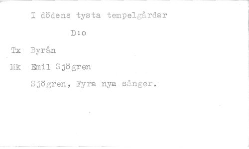//// dödens tysta tempelgårdar D:o //// Tx Byrån //// Tk 3ni1 Sjögren //// Sjögren, Fyra nya sånger. ////