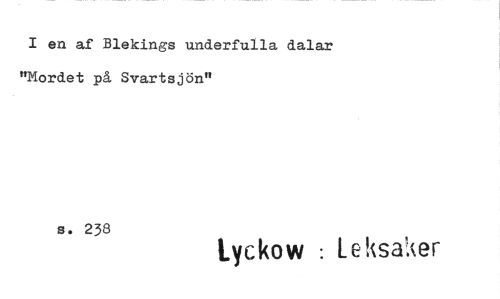 //// I en af Blekings underfulla dalar "Mordet på Svartsjön" //// s. 238 Lyckow : Leksaker ////
