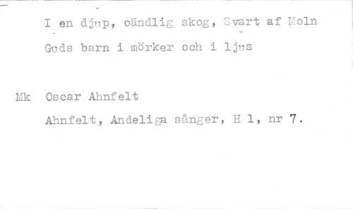 //// I en djup, oändlig skog, Svart af noln Guds barn i mörker och i ljus //// ifk Oscar Ahnfelt //// Ahnfelt, Andeliga sånger, H 1, nr 7. ////