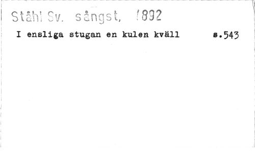 //// Ståh Sv. sångst s.543 //// b i //// I ensliga stugan en kulen kväll ////
