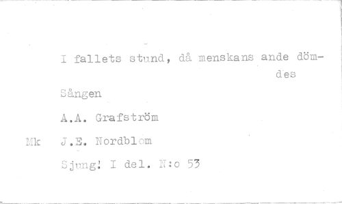 //// I fallets stund, då menskans ande döm- //// des //// Sången //// A.A. Grafström //// Mk J.E. Nordblom //// Sjung: I del. N:o 53 ////