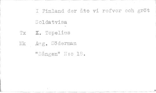 //// I Finland der åta vi rofvor och gröt Loldatvisa //// Tx X. Topeliu.s //// LIk An g. öderman //// "Sången" U:o 18. ////