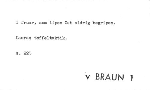 //// I fruar, som lipen Och aldrig begripen. Lauras toffeltaktik. //// s. 225 //// v BRAUN 1 ////