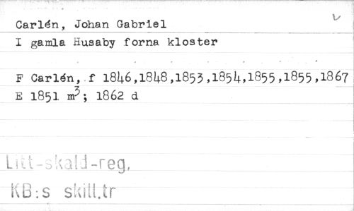 //// Carldn, Johan Gabriel //// I gamla Husaby forna kloster //// F Carldn, f 1846,1848,1853,1854,1855,1855,1867 E 1851 J; 1862 d //// K U s skitUr ////
