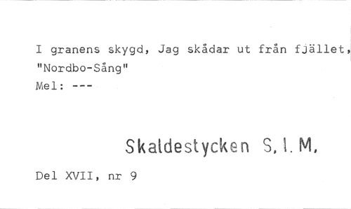 //// I granens skygd, Jag skådar ut från fjället, "Nordbo-Sång" //// Mel: //// Skatdestycken S, M, //// Del XVII, nr 9 ////