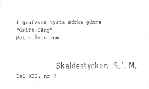 //// grafvens tysta mörka gömma "Grift-Sång" //// Mel : Åhlström //// Skaldestyck, n S.1. M, //// Del XII, nr 3 ////