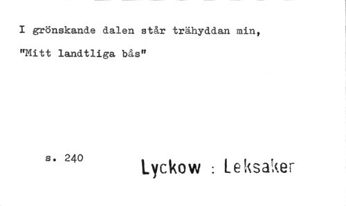 //// I grönskande dalen står trähyddan min, "Mitt landtliga bås" //// s. 240 Lyckow : Leksaker ////
