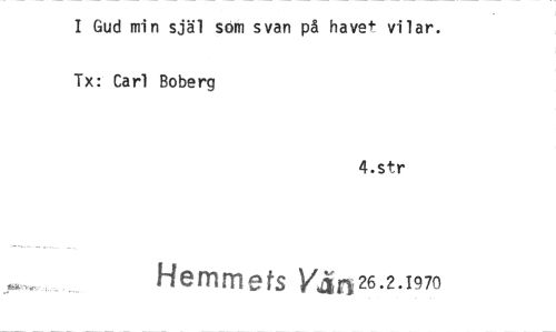 //// 1 Gud min själ som svan på havet vilar. T : Carl Boberg //// 4.str //// Hemmets Yäni26'239" ////