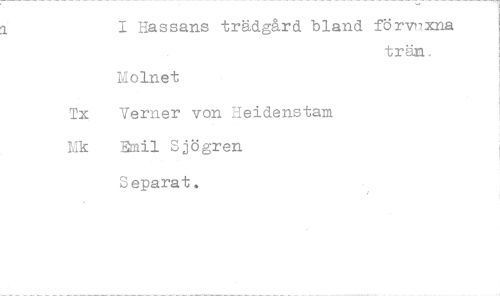 //// Massans trädgård bland förvuxna //// trän. //// Molnet //// Tx Verner von Heidenstam Yik Emil Sjögren //// Separat. ////