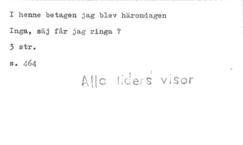 //// I henne betagen jag blev häromdagen //// Inga, säj får jag ringa? //// 3 str. //// s. 464 //// All 1:ders' v i sor ////