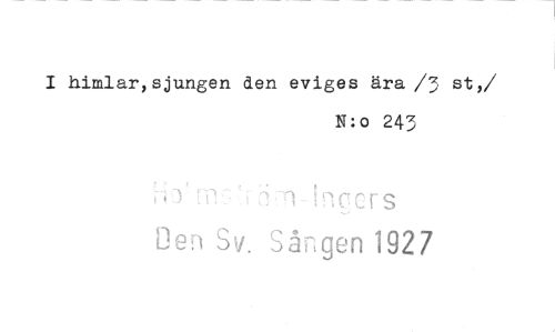//// I himlar, sjungen den eviges ära /3 st, //// /N: o 243 //// Den Sv. Sången 1927 ////