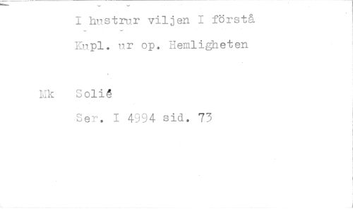//// I hustrur viljen I förstå Kupl. ur op. Hemligheten //// lac Solid //// Ser. I 4994 sid. 73 ////