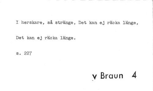//// 1 herskare, så stränge, Det kan ej räcka länge, Det kan ej räcka länge. //// s. 227 //// y Braun 4 ////