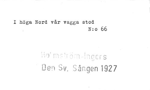 //// I höga Nord vår vagga stod //// N:o 66 //// qcrs //// Oen Sv. Sången 1927 ////