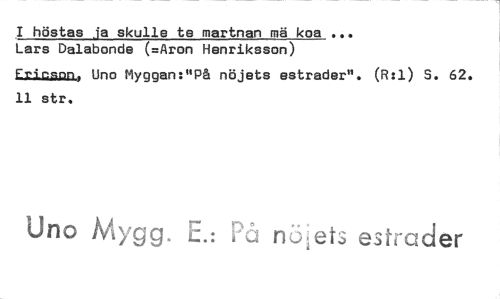 //// I höstas ja skulle te martnan må koa Lars Dalabonde (=Aron Henriksson) //// Frinnnn, Uno Myggan:"På nöjets estrader". (R:1) 9. 62. 11 str. //// Uno Mygg. E.: På nöiets estrader ////
