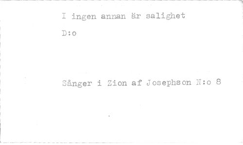 //// 1 ingen annan är salighet D:o //// Sånger i Zion af Josephson N:o 8 ////