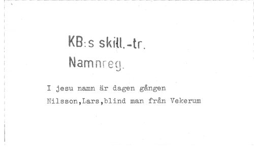 //// KB:s //// Namnreo //// I jesu namn är dagen gången Nilsson,Lars,blind man från Vekerum ////