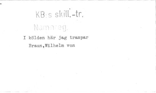 //// KB: s skit(.-tr. //// I kölden här jag trampar Braun,Wilhelm von ////