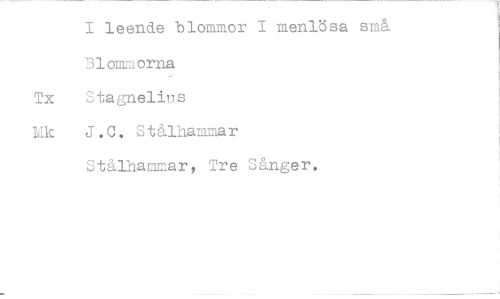 //// I leende blommor I menlösa små Blommorna //// Tx Stagnelius //// Lik J.C. Stålhammar //// Stålhammar, Tre Sånger. ////