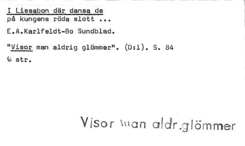 //// I Lissabon där dansa de på kungens röda slott //// E.A.Karlfeldt-Bo Sundblad. //// "Visor man aldrig glömmer". (D:1). S. 84 str. //// Visor wan crldr.g örrirrter ////
