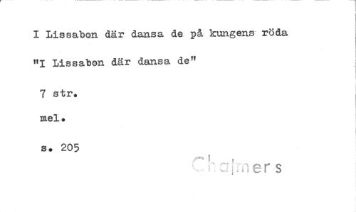 //// I Lissabon där dansa de på kungens röda "I Lissabon där dansa de" //// 7 stro mel. //// s. 205 //// er s ////