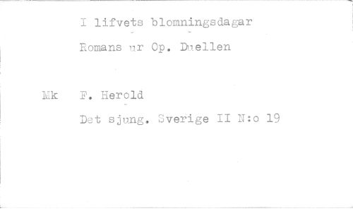 //// I lifvets blomningsdagar Romans nr Op. Duellen //// Mk F. Herold //// Det sjung. Sverige II N:o 19 ////