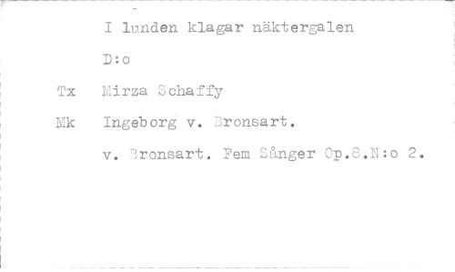 //// I lunden klagar näktergalen //// D:o //// Tx 1J_rza Schaffy //// Mk Ingeborg v. 3ronsart. //// v. .7,ronsart. Fem Sånger Cp.8.N:o 2. ////