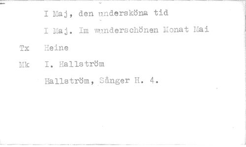 //// I Maj, den undersköna tid //// I Maj. Im wtlnderschönen Lad_ //// Tx Heine //// Mk I. Hallström //// Hallström Sånger H. 4. ////