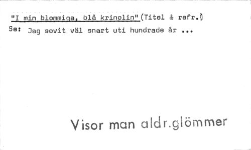 //// "I min blommiga, blå krinolin"(Titel & refr. Se: Jag sovit väl snart uti hundrade år ... //// Visor man aldr.giömmer ////