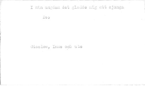 //// I min ungdom det gladde mig att sjunga 37:o //// Gisslow, Inne och ute ////