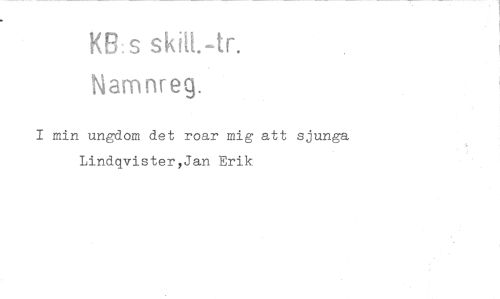 //// KB: s skit[.-tr. //// Namnreg. //// I min ungdom det roar mig att sjunga Lindqvister,Jan Erik ////