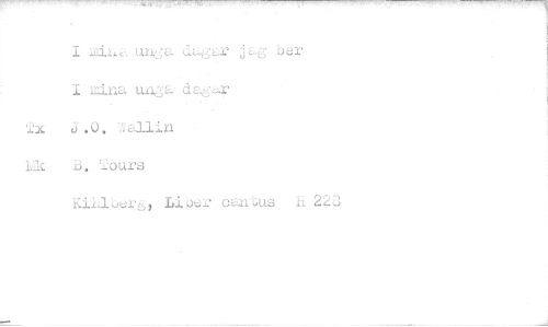 //// I mina unga dagar j bar I mina unga. dagar //// J.O. Wallin //// hk B. Tours //// KiLlberå, Liber cantus h 223 ////