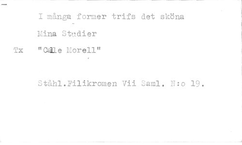 //// I många former trifs det sköna Mina Studier //// Tx "Calle Morell" //// Ståhl.Filikromen Vii Saml. N:o 19. ////