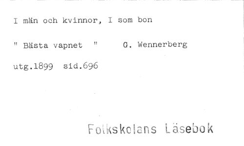 //// I män och kvinnor, I som bon //// " Bästa vapnet " G. Wennerberg //// utg.1899 sid.696 //// r u //// Askektis Läsebok ////
