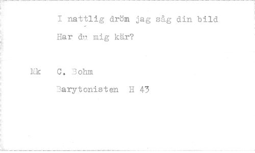//// 1 nattlig drön jag såg din bild Har dl, mig kär? //// Mk C. Bohm //// Barytonisten H 43 ////