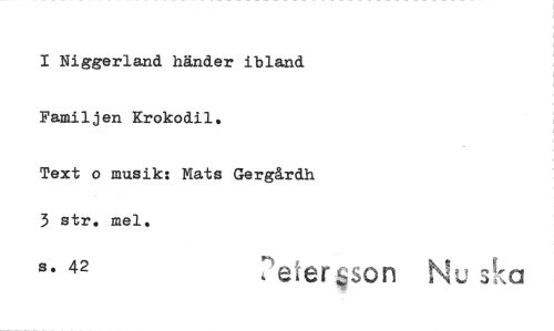 //// 1 Niggerland händer ibland. Familjen Krokodil. //// Text o musik: Mats Gergårdh 3 str. mei. //// s. 42 eterson Nu ska ////