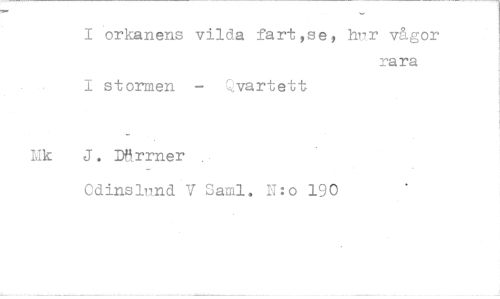 //// I orkanens vilda fart,se, hur vågor //// rara //// I stormen - Cvartett //// Mk J. Därrner //// Odinslund V Saml. N:o 190 ////