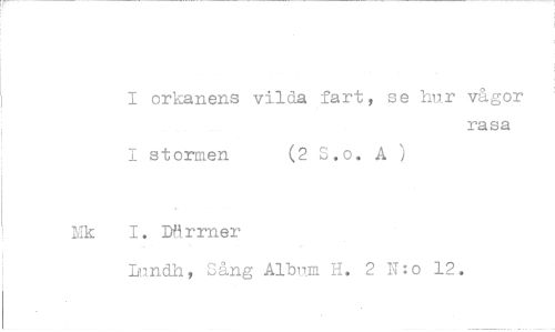 //// I orkanens vilda fart, se hur vågor //// rasa //// I stormen (2 S. o. A ) //// Lik I. Darrner //// Lundh, Sång Album H. 2 N:o 12. ////